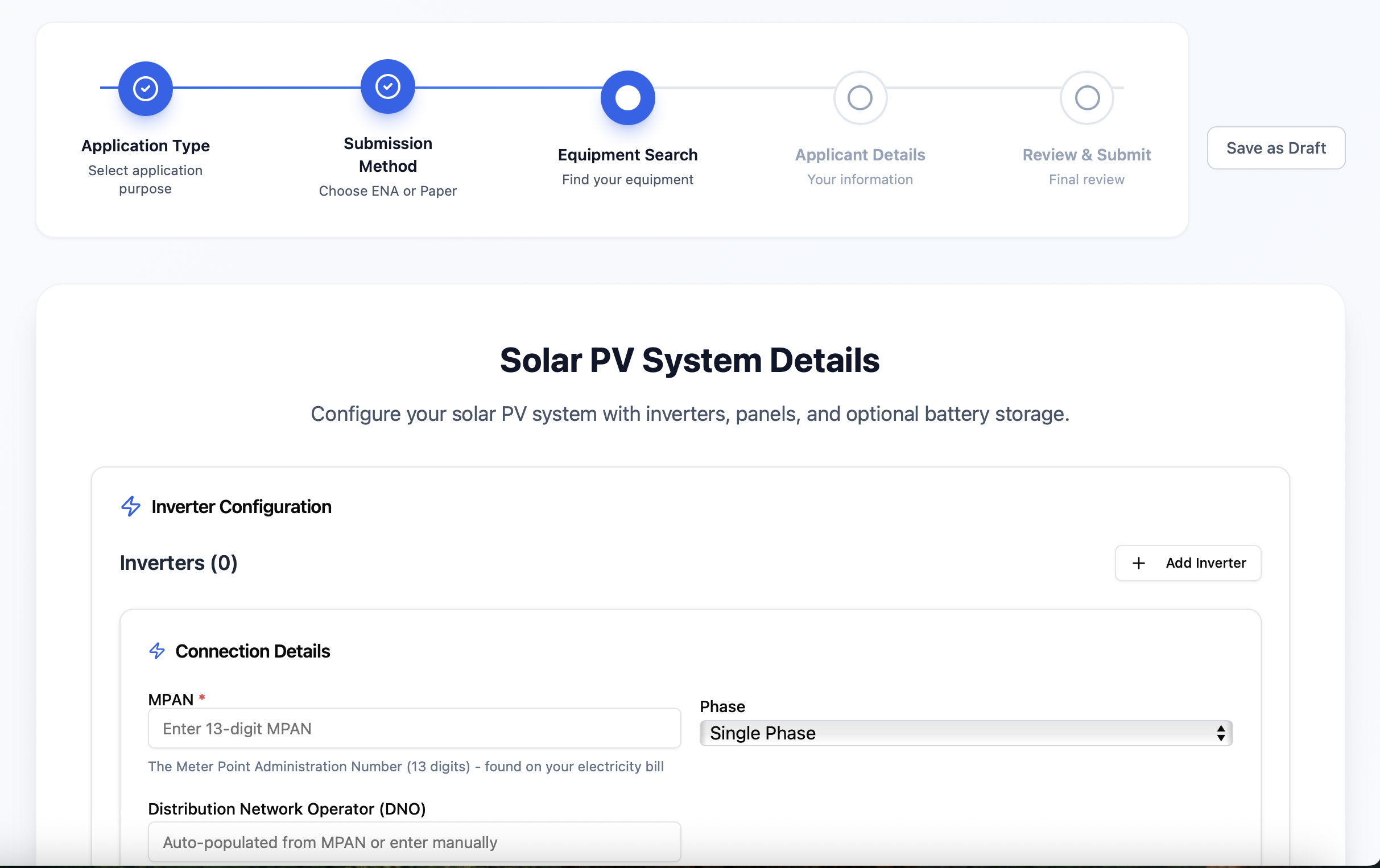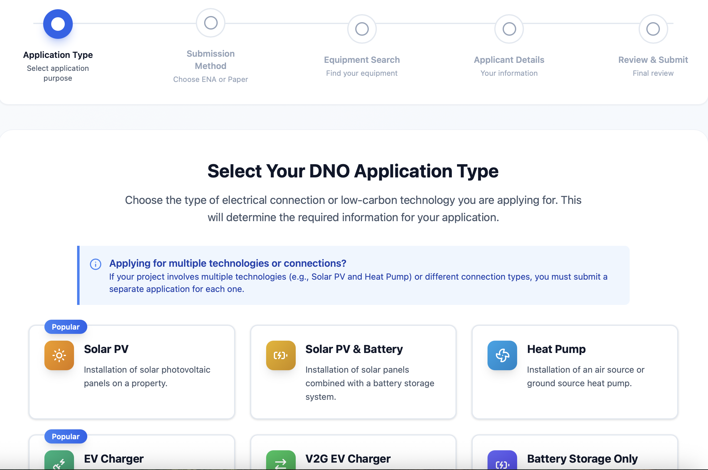Manages Solar, EV, and heat pump DNO notifications, G99 applications, and G99 SAFs in one platform, automatically completing the relevant G99 SAF sections to reduce errors and rework.